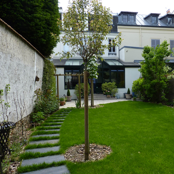 Pour la réalisation de ces jardins, nous avons pris en compte la demande de nos clients, avec comme point de départ leurs espaces de vie. Ensuite, nous avons repris l’esprit des jardins d’inspiration anglaise pour l’intégrer parfaitement dans l’environnement des clients.